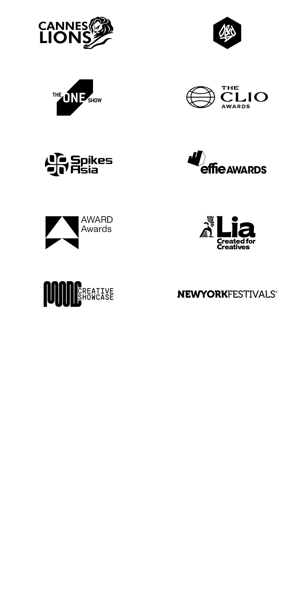 Still scrolling? Rest assured, my work was recognised at all the major shows including Cannes from 2005-2019, but it felt a little self-indulgent to keep the list going.